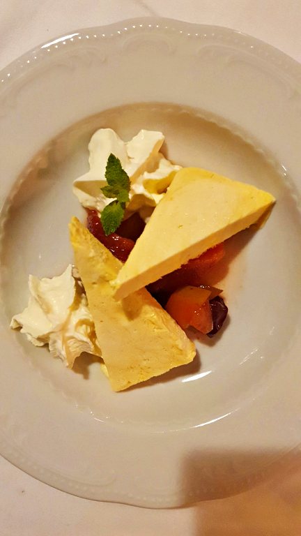 Entre as sobremesas, além das opções fixas do cardápio, pergunte sempre pela sugestão da estação. No inverno pedimos esse doce bem natalino com sabor das especiarias utilizadas no lebkuchen e no glühwein, o vinho quente típico dos Mercados de Natal. Uma porção foi suficiente para dividirmos entre o casal.