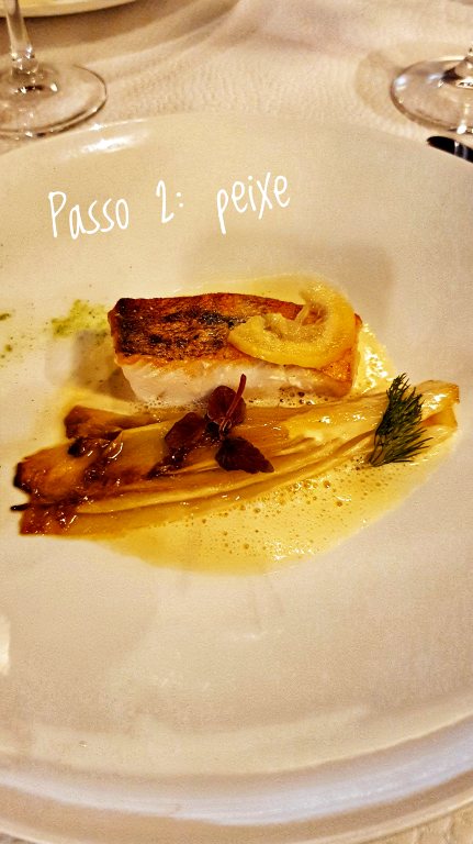 Passo 2: A sequência trouxe um prato bem leve de Peixe fresco grelhado em molho cítrico e funcho. A harmonização foi com um Mettaz Humagne Rouge Merlot 2017.