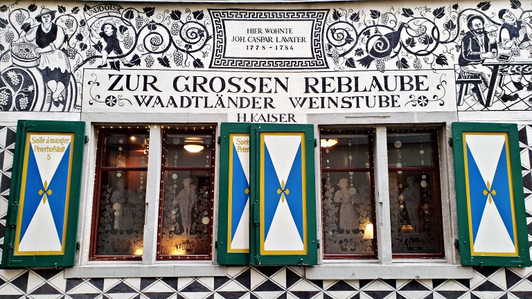 Em um estreito beco do centro histórico de Zurique, com vista para a bela Igreja St. Peterskirche, um incrível edifício datado de 1260 abriga o restaurante Kaiser’s Reblaube. Mesmo que não estivesse mencionado no guia Michelin como um dos melhores restaurantes da cidade, o Kaiser’s Reblaube é daqueles locais que já valeriam a visita só para admirar sua fachada histórica lindamente decorada.