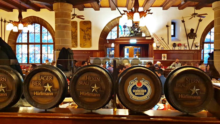 O que pedir no Zeughauskeller: Um dos diferenciais está na carta de bebidas, que dispõe de diversas opções de cervejas em barril – incluindo duas de fabricação própria que levam o nome do restaurante: a Zeughauskeller House Bier ou a Zeughauskeller Dunkel. A dica é pedir uma de cada para experimentar e escolher a favorita.