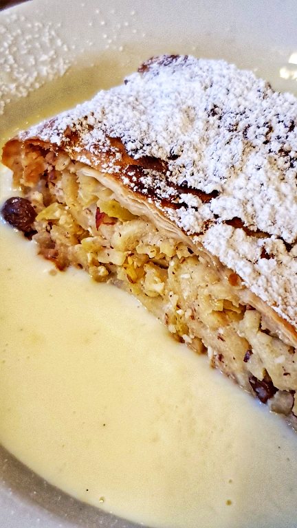 Para encerrar, o Caramel-Köpfli (Crème Caramel) é uma típica sobremesa de Zurique que lembra muito o nosso pudim de leite condensado. Aqui ele é servido com 3 pequenas porções de chantilly. Outra pedida que nunca tem erro em um restaurante dessa região é a torta de maçã caseira (Hausgemachter Apfelstrudel), servida quente com um molho de baunilha. A versão suíça é um pouco mais seca do que a alemã, mas igualmente deliciosa.